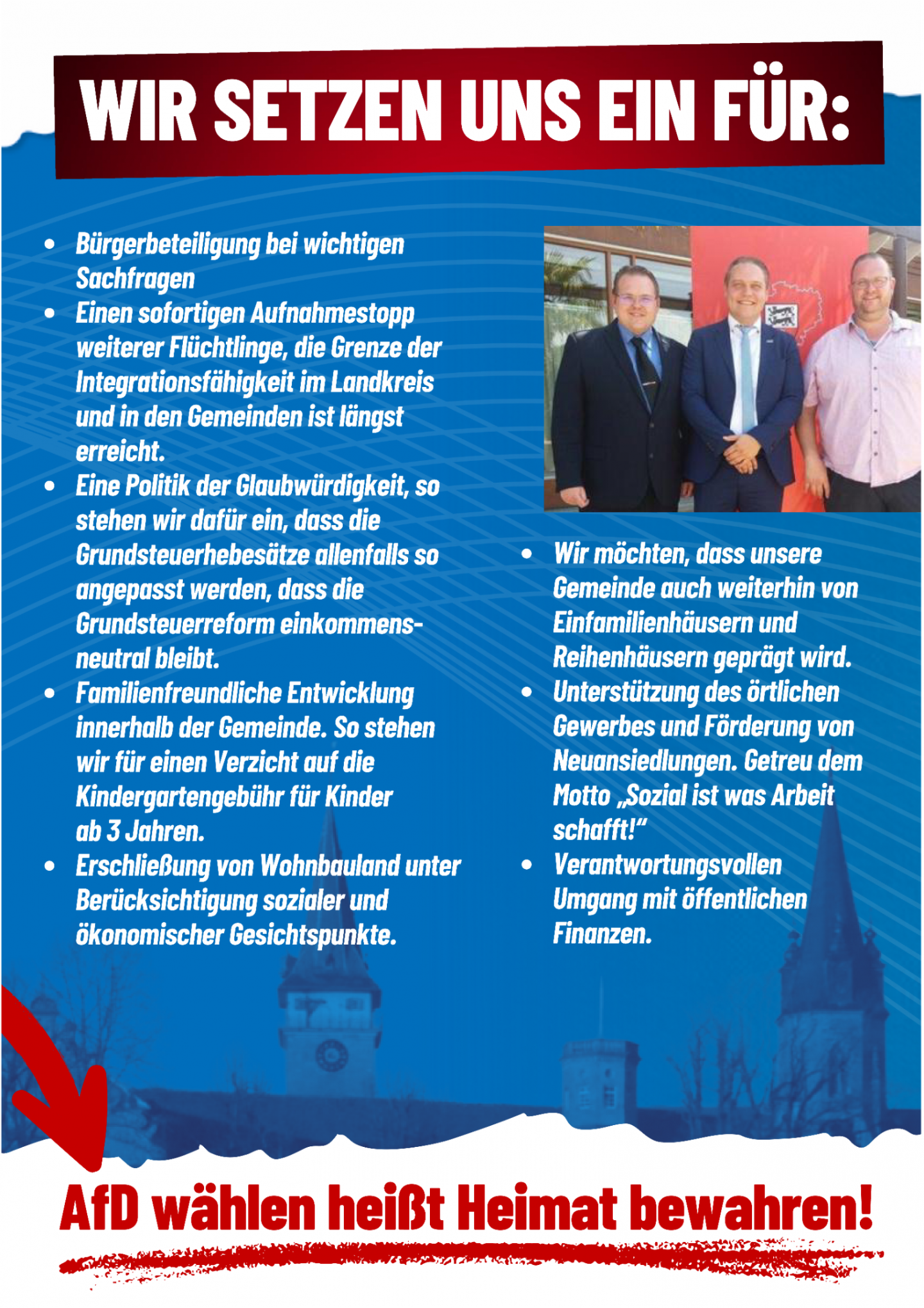 Die Aufgabe eines Kreis- / Gemeinderates besteht vor allem darin nahe an den Bürgern zu sein, ihre Interessen aufzunehmen, zu bündeln und in nachhaltige Politik umzusetzen.